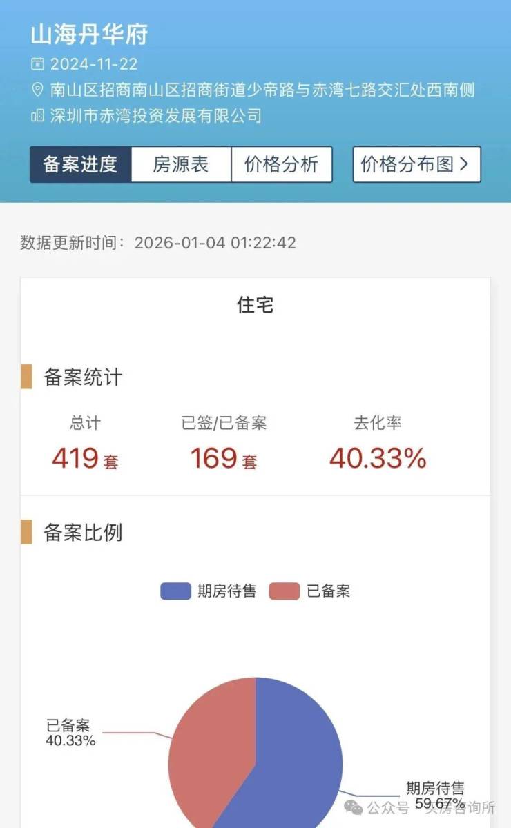 目前开盘1年多时间了整体备案40%,为什么卖的这么差呢,主要原因还是周边竞品太多,竞品基本都快清盘了,而且位置还比这里好,目前周边竞品都在赤湾地铁站周边,山海丹华距离地铁站1.3公里,不过好在这里优势是大花园社区+小高层以及准现房!竞品都是超高层为主以及2-3栋楼的小区