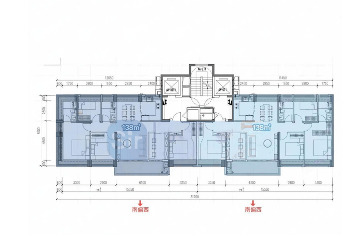 138㎡的4+1房2厅2卫:户型分布于3/4栋,南向板楼,独立电梯厅,小高层,有中间户和端头户区别,端头户多整面凸窗赠送,核心区非常罕见的优质产品,跟2015年入市的前海时代CEO公馆有点接近。
