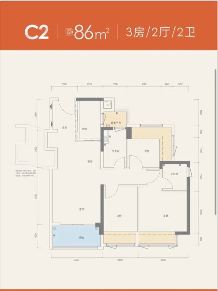 竖厅格局,客厅3.4米开间,3个卧室分别做到了主卧10.99㎡/次卧7.3㎡/次卧5.91㎡,还带1个设备平台,赠送面积高达12.71㎡,实际得房率约97% 含赠送,西南/东南或西北朝向。