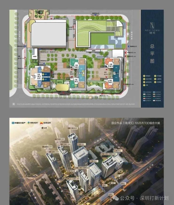 根据公示规划,项目由4栋45F超高层住宅、3栋40F、30F写字楼、1栋45F保障房、1栋3F幼儿园以及一所九年制学校组成,未来将建设成为集住宅、办公商业为一体近40万㎡的TOD城市商住综合体项目。