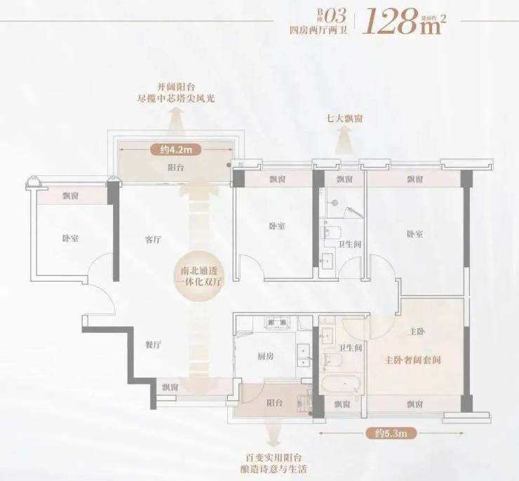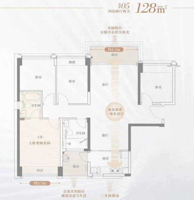 05户型:客餐厅一体化,联通阳台,拓宽家人活动空间,主卧大套房,奢配独立卫浴,浸享优越生活