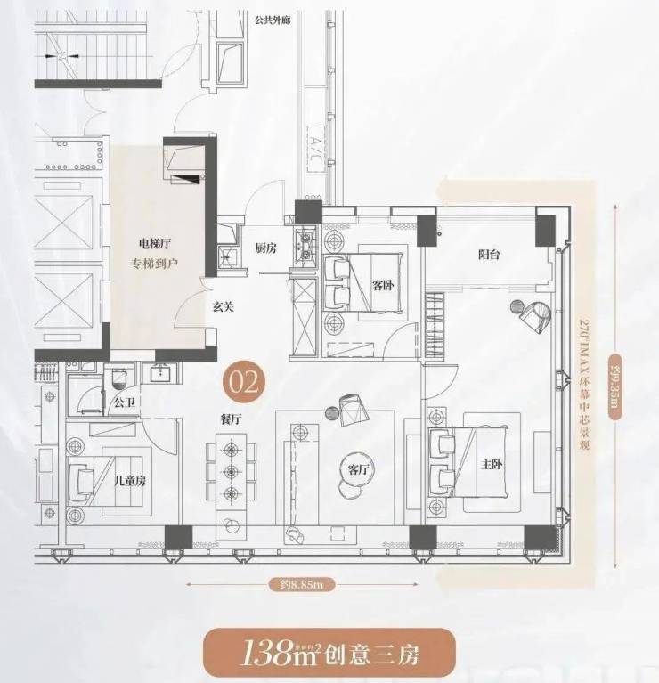 03户型:明朗坚挺,南北对流通透,悦享清风与阳光,动静分区,会客生活互不打扰,尊享私密感