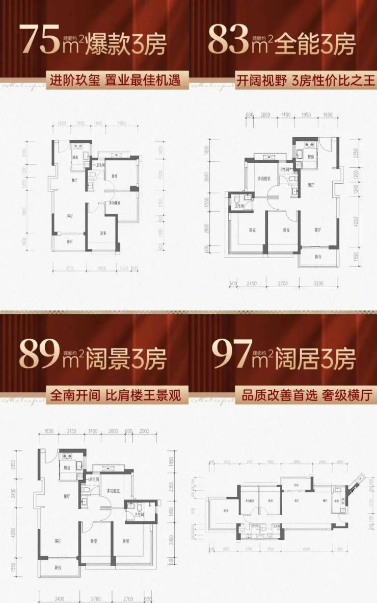 4、户型76平起,上车三房总价低,刚需上车友好;