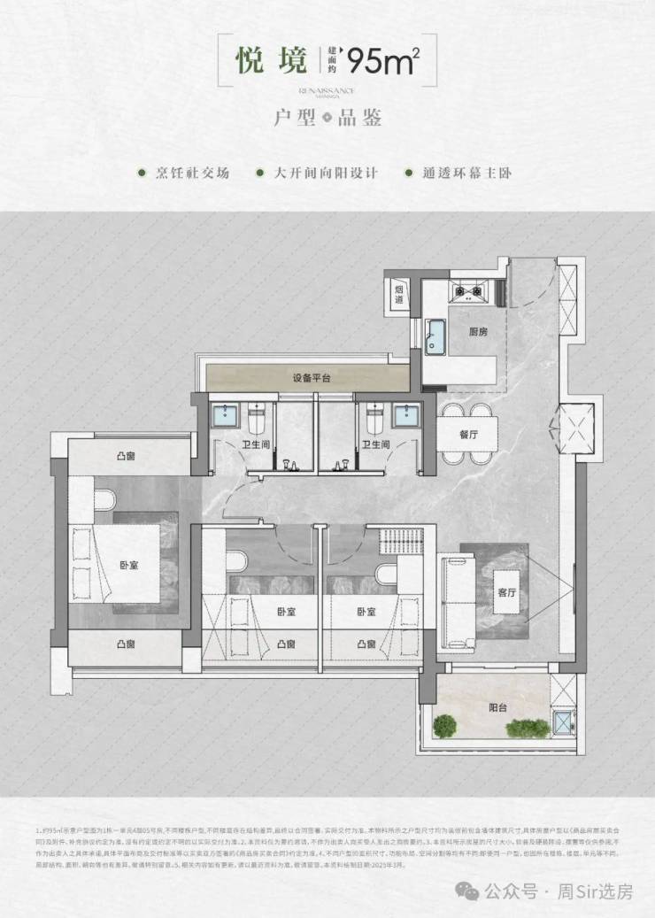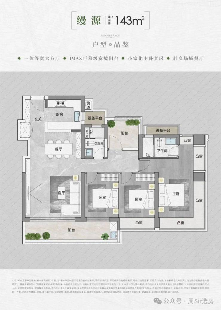 【户型面积】建面约90-95-105-143㎡3-4房