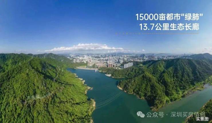 塘朗山:60%绿化控规,绿化覆盖全市第一的天然氧吧,负氧离子含量2万/cm³,是福田中心区的4倍(步行约300米可到紫涧园)