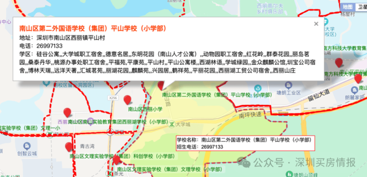 自带一所九班公立幼儿园,南二外平山中小学,深圳大学城丽湖实验学校初中部