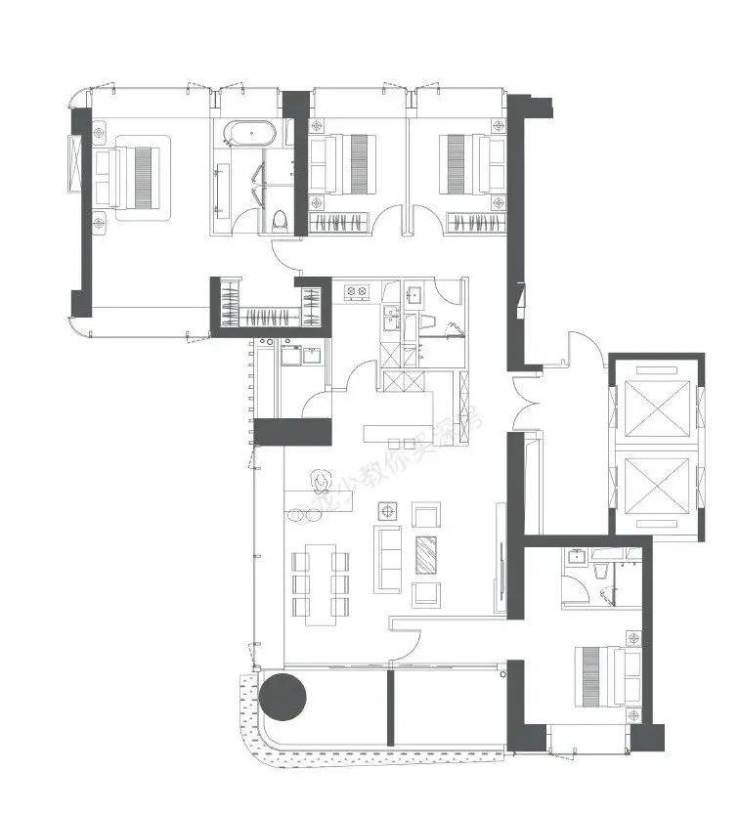 【面 积】192㎡四房三卫、209㎡四房四卫、247㎡四房四卫