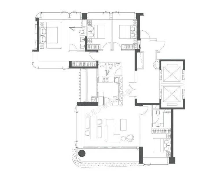 2.功能上,设置两个套间并动线上拉开距离,也保证了主人和长辈之间居住的舒适度和私密性