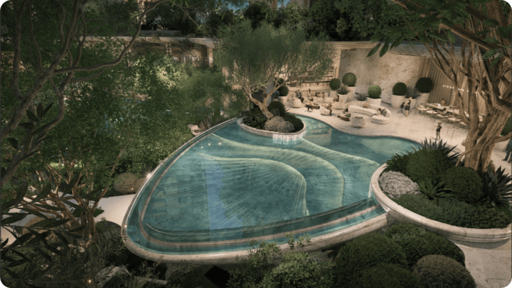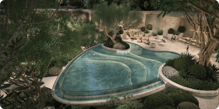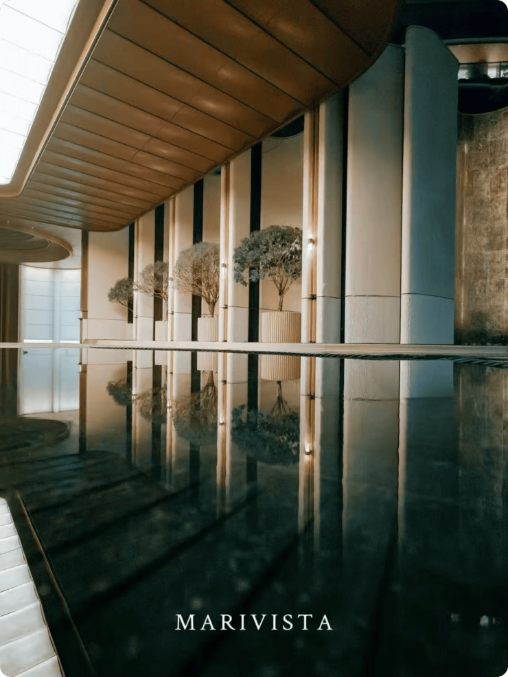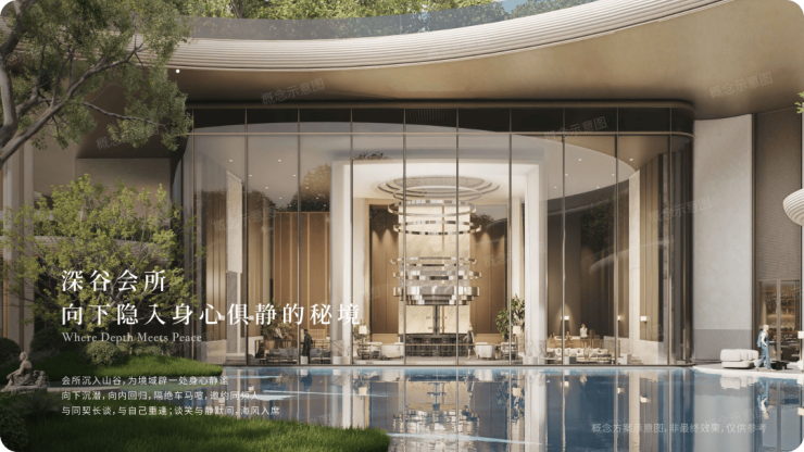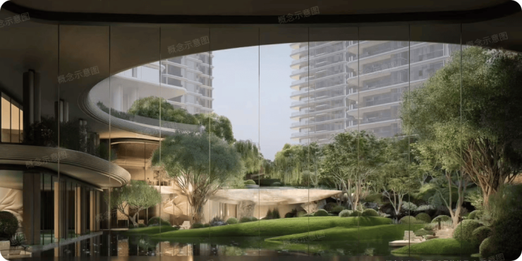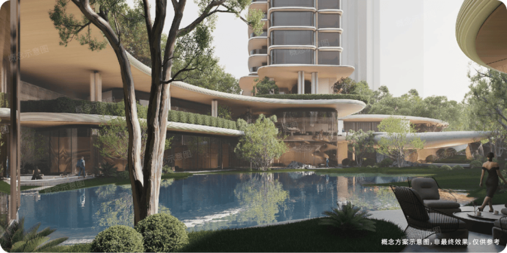 滨海园林:『深圳·观潮府』为台地式约5.5万m²三层立体园林,以森海浮屿概念,打造一心十岛,一栋一花园的复合型滨海主题大花园,可实现漫步间无感穿行下沉庭院、屋面园林、瞰海平台,享用涵盖各种社交场景的精奢会所,加上丰富水景&各种名贵植被衬托,意蕴感非常好!