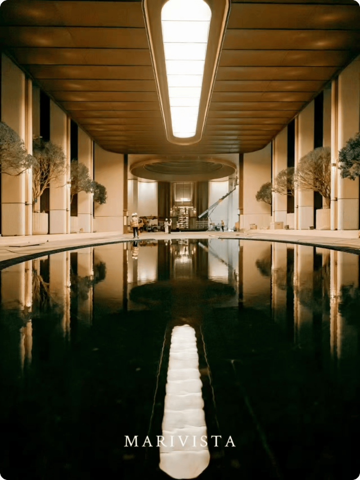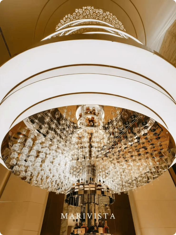 归家礼序:『深圳·观潮府』小区门楼在地块东侧,主入口设计了天圆地方穹顶的车马院和双水盘环岛落客区,环岛两侧通道设计了9米高的桅杆造型立柱和8株稀有乔木点缀,目之所及覆面用料多为名贵奢石,不管是寓意,还是奢感、仪式感都营造的非常到位,还充分考虑了风水局!