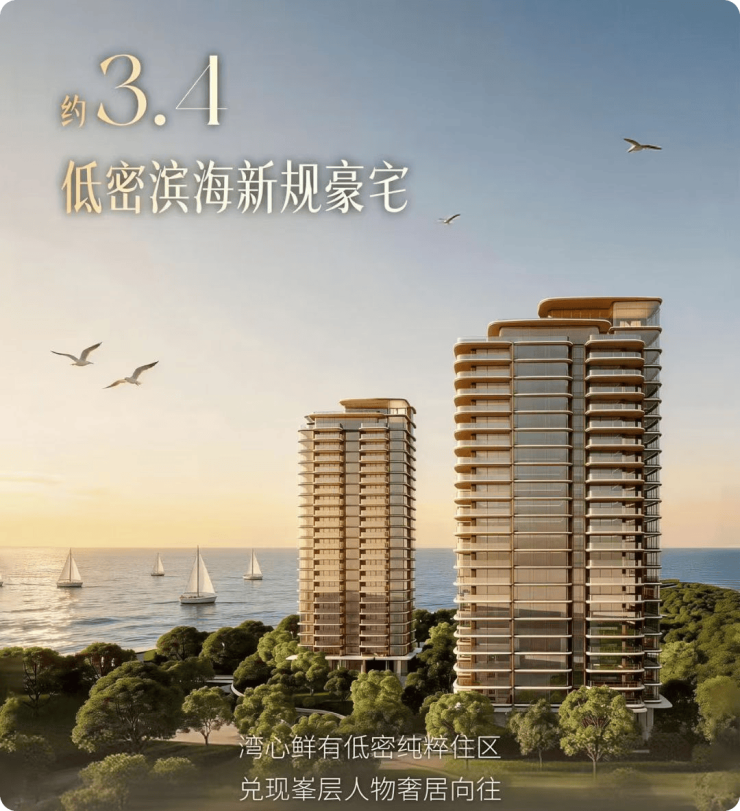 『深圳·观潮府』占地约4.25万㎡,规划建面约21.6万㎡,计容积率建面约17.5万㎡,容积率3.41,绿化率30.01,定位纯商品房属性、纯居住圈层,新国标低容积滨海顶序豪宅!