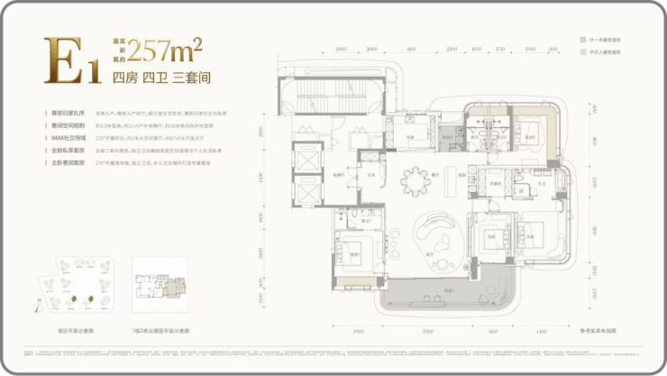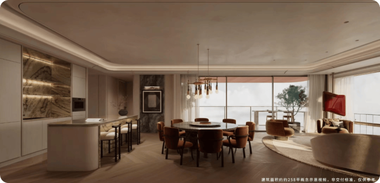 户型均具备3面采光通风&视野景观条件,约258㎡户型更是采用近两年顶豪流行的全景仓布局,约333户型每个卧室都很舒阔,所以户型都标配中西双厨功能区,除143-168㎡户型外,其它户型客厅都有可灵活使用的X空间。