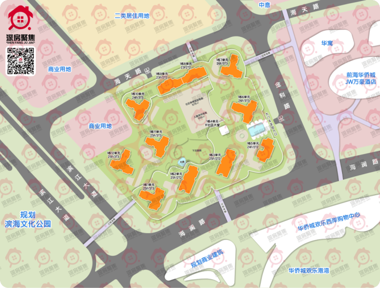 公园:项目南侧紧邻网红打卡IP-欢乐港湾,融合海景、公园、生态与商业属性。距离滨海广场步行约950米。西侧那块绿地规划的是滨海文化公园,休闲娱乐这块也可以说是既方便又优质。