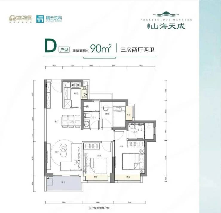 90㎡的3房2厅2卫,设计的是经典竖厅格局,客厅3.4米开间,餐客厅一体化,三开间朝南,3个卧室分别是3米/2.9米/2.5米的宽度,L型厨房,