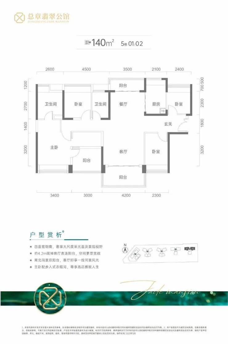 140㎡4+1房二卫:该户型是「总章翡翠公馆」的最大面积户型,实际上可以做到五房二卫。南山区很少有140㎡面积段做得出五房双阳台的设计,实际使用率也接近80%,南/北通透的户型非常舒服。