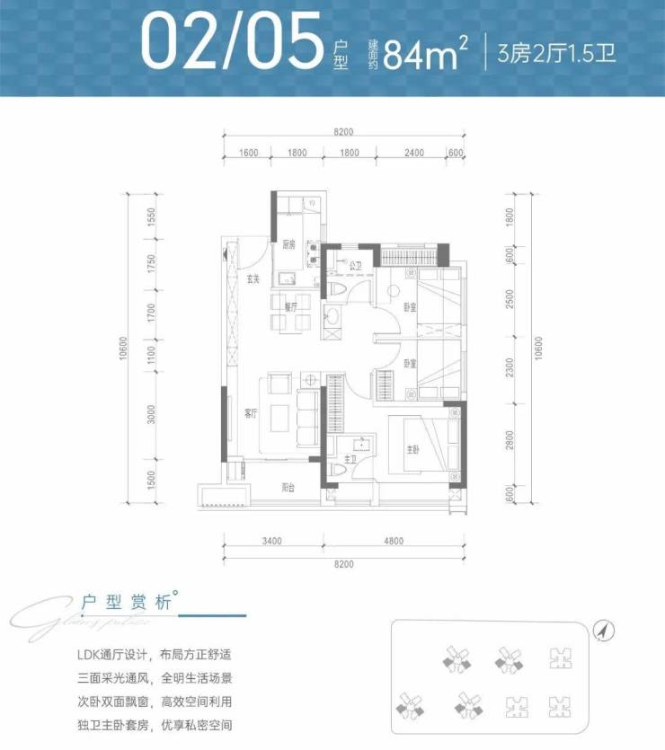 面积:84㎡3房1.5卫,98㎡3房2卫,114-128㎡4房2卫。