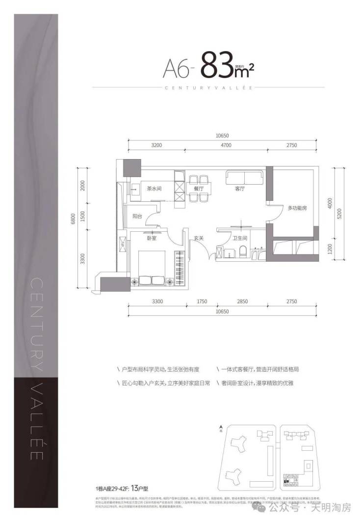 🎆 【产品】约67-87㎡1-2房,百米之上,天赋臻寓,70年产权,户户带阳台,拥有约3.3m超舒适层高,5梯14户,高定奢装,世纪山谷首发之选。