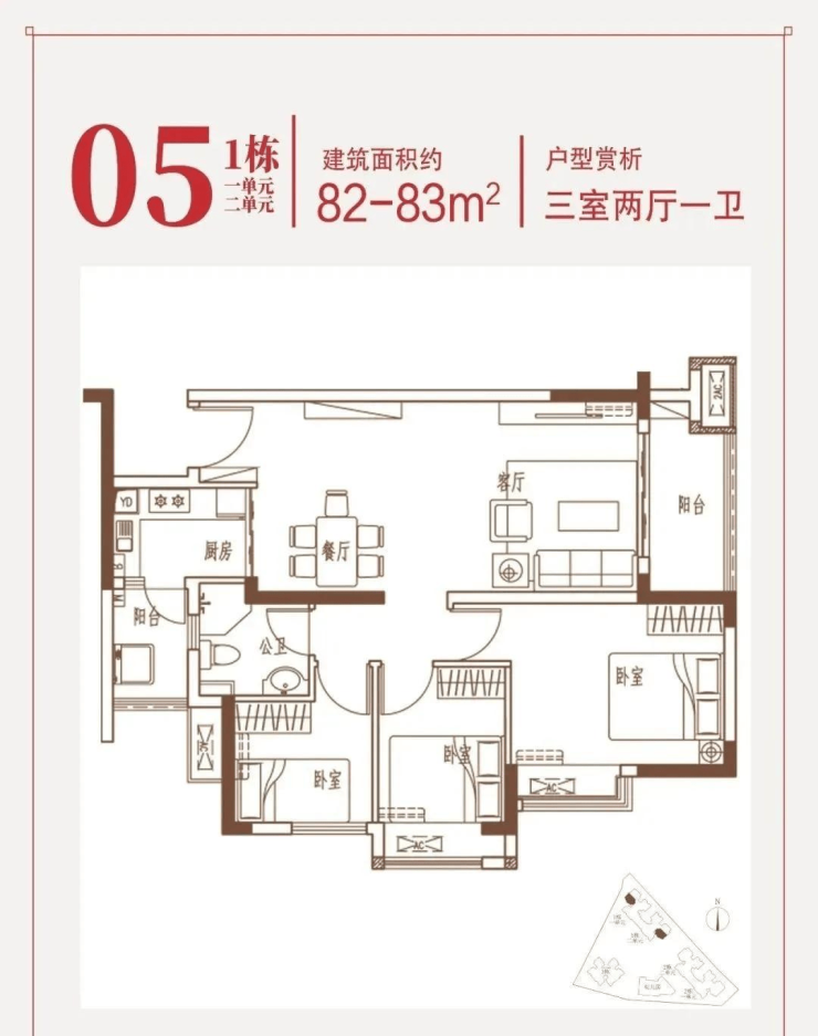约82-83㎡三房:端头位,全采光,享稀缺山海景观。