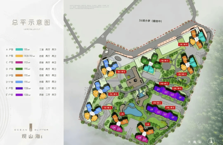 观山海家园,由远洋集团打造,总占地面积约4.24万㎡,总建筑面积约16.3万㎡,计容建筑面积约11.64万㎡,容积率2.65,绿化率30.85%,共由10栋总高17-25F住宅组成,有8栋塔楼,2栋板楼设计,其中1栋1/2单元住宅24F,1栋3单元住宅23F,2栋1单元住宅19F,2栋2单元住宅24F,2栋3单元住宅22F,3栋1/2单元/4栋1/2单元住宅17F,5栋/6栋住宅25F,配建有公交首末站。