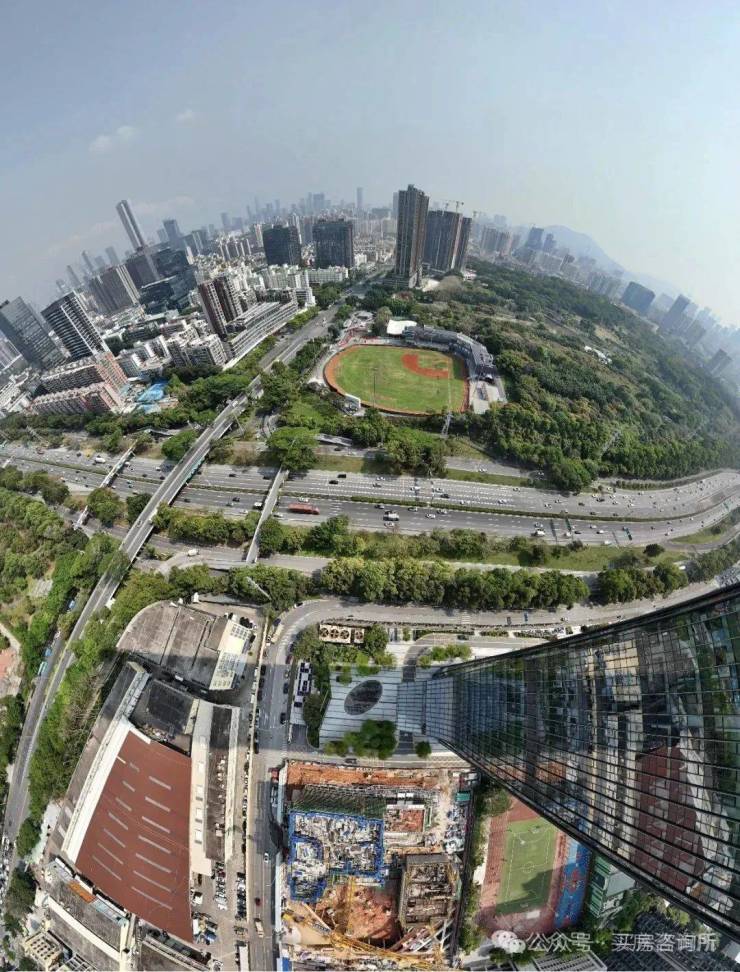 △以上为95-105㎡东北朝向视野,能看到远处的留仙洞总部基地跟南山科技园,也是视野最开阔的一个朝向但是朝向是东北(以上为航拍视野仅供参考)