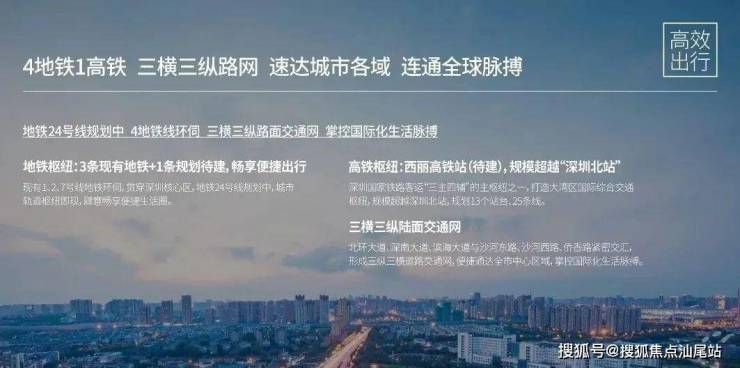 【高效交通】四地铁一高铁,三横三纵路面交通网,速达城市各域,连通全球脉搏。距1号线白石洲站680米、西丽高铁枢纽5公里