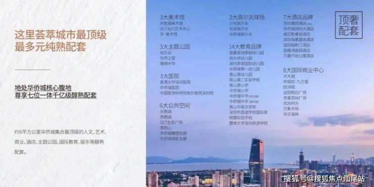 【顶奢配套】约6平方公里华侨城集合最顶级的人文、艺术、商业、酒店、主题公园、国际教育、娱乐等极致醇熟配套,中心繁华举步即达。