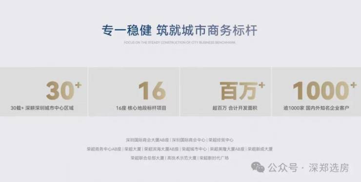 荣超集团——创立于1993年,31年开发运营经验,专注于商务写字楼开发运营,是最早进入福田CBD的专业写字楼开发商