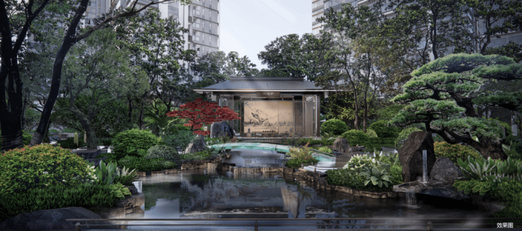 鹏宸云筑,深圳近10年超大纯居地块,打造约31万岭南人文住区。西区园林以岭南四大名园“清晖园”为灵感,在“一轴一心一环·山水六境”的格局中重构岭南风骨。