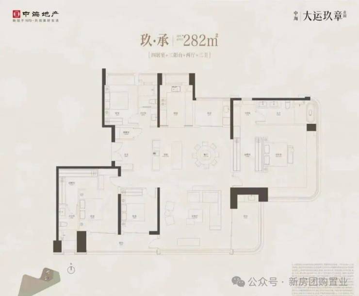 206m²的4房2厅3卫,折后总价955-1335万/套,单价4.62-6.47万/m²。