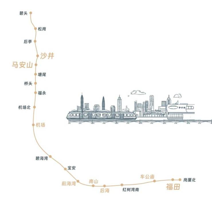 紧邻11号线沙井站805米,5站到机场,7站通宝安中心(从马安山出发),快速通达前海湾、后海总部基地、深湾总部基地、福田中心。