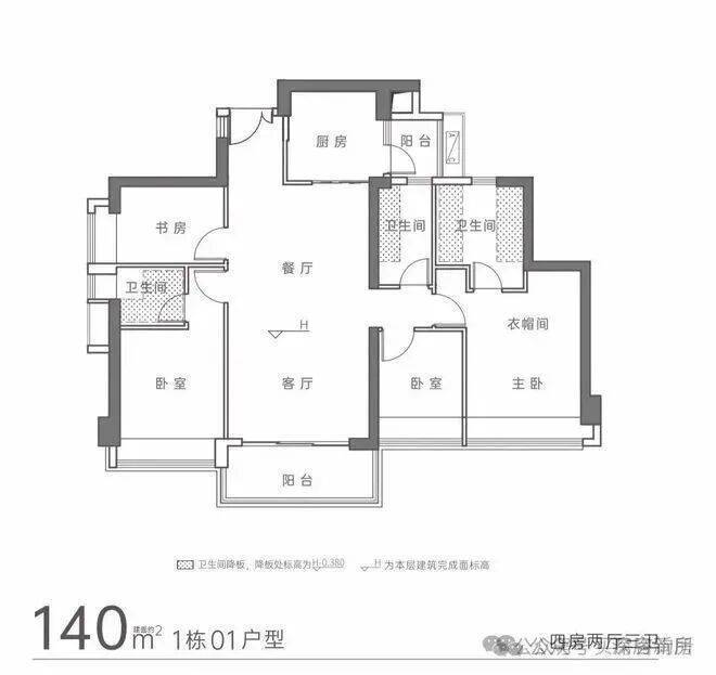 建面约140㎡4房2厅3卫: