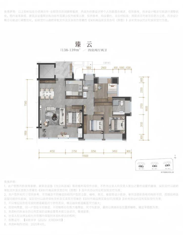 光明中心区,满京华金硕臻府计划将在4月份取证入市,本次将推出1栋1/2/3单元,共420套房源,不过其中可售套数暂未确定,面积有138-139㎡的4房2厅2卫,202-204㎡的4房2厅3卫户型,作为光明顶豪楼盘,金硕臻府做到了一梯一户,专梯入户的奢阔大空间,3.15米层高,这次开盘价格预计会在5万/平左右,具体待官方公布,其中光明仅有的204平大户型基本是千万起步门槛,预计在2026年10月份交房,138平户型带精装交房,204平户型带简装交房。