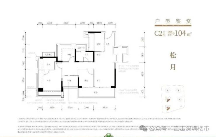 104㎡的4房2厅2卫,折后总价517-601万/套,单价约5-5.81万/㎡。