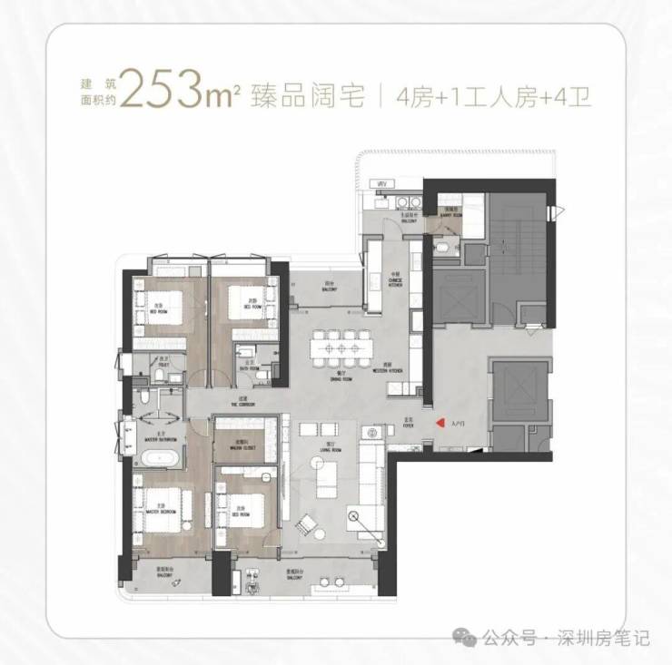 T9/T10栋:总高53层,4梯3户,183-270㎡4房及270㎡复式。