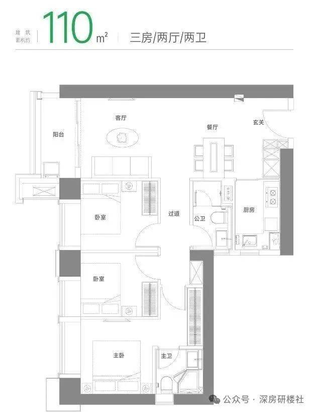 建筑面积约110㎡户型
