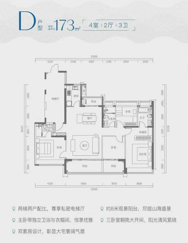 产品:建面约117-173㎡3-4房高端亲海大宅