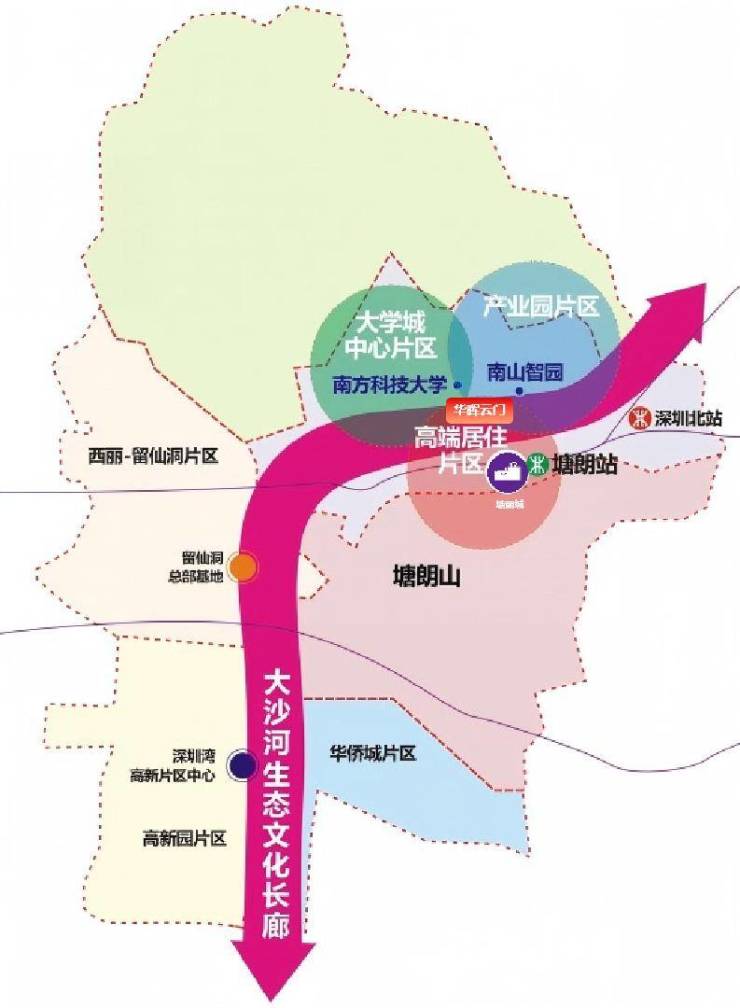 从区域发展来看,华晖云门所在的大学城片区,高校云集,文化氛围浓厚。周边有南方科技大学、深圳大学(西丽校区)、北京大学(深圳研究生院)等知名学府,众多科研机构和高等院校汇聚,为区域注入源源不断的知识与创新活力,也让这里的人文气息愈发醇厚。不仅如此,南山智园规划面积达 66 万㎡,随着其逐步建设完善,以及留仙洞总部基地的蓬勃发展,大量高新技术企业和高端人才将涌入,区域价值将进一步提升,华晖云门也将坐享这一发展红利。