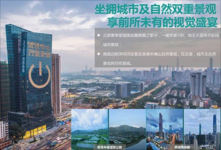 项目南面远眺深圳河全景及香港米埔山自然景观,城市及自然景观将尽收眼底。