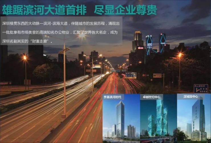 【深城投鹿丹大厦】座落深圳滨河-滨海大道,雄踞首排,该主干道伴随城市发展,涌现享有市场美誉的高端知名办公企业,汇聚了世界各大名企,成为深圳名副其实的“财富走廊”。