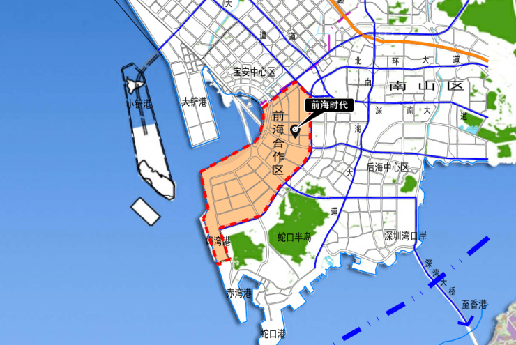 深铁前海时代地处南山区西部临海区域,位于前海“三区两带”城市规划结构中“三区”之一的桂湾片区05开发单元。桂湾、前湾、妈湾三片区是最早划定的于最早划定的前海深港现代服务业合作区范围。