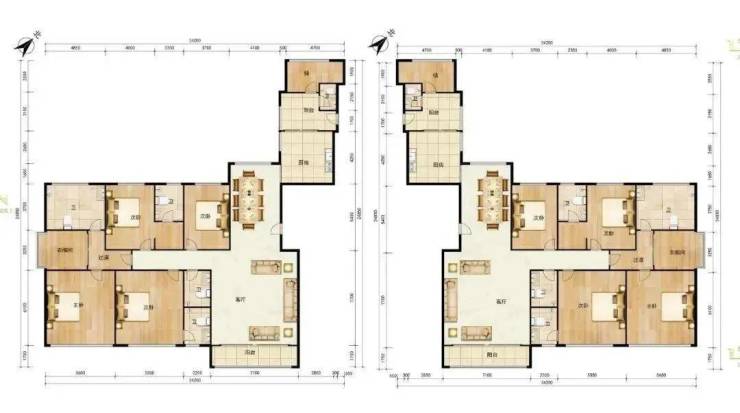 4房(2套房),客厅开间达到6.1米,实际得房率可达95%,不管是得房率还是产品尺度在同类型产品中都占有较大优势。