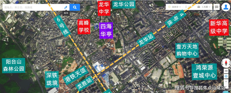 四海华亭,位于龙华区大浪街道龙胜路与春华路交汇处东侧,由华侨城集团开发,项目毗邻高峰学校,周边多为城中村,城市面貌稍差,不过基本都已经划入城市更新单元,东南侧约1.2公里是龙华最大的壹方天地购物中心,4号地铁线“龙华站”,“龙胜站”距离都在800米范围内,6号地铁线“上芬站”距离约1.4公里。