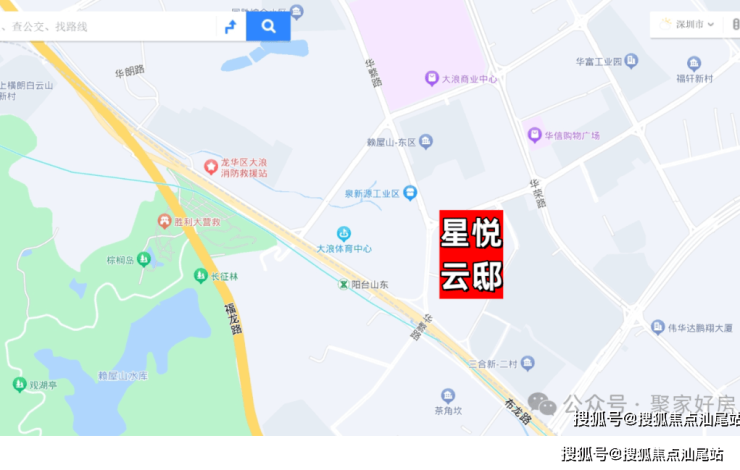 星悦云邸,由星河集团开发,位于龙华区大浪街道布龙路与华繁路交汇处东北侧,项目西北侧约600米范围内有大浪体育中心,大浪文体中心同期在建,北侧靠近龙华第三实验学校(华悦校区),西侧约1公里是有名的阳台山森林公园,6号地铁线“阳台山东站”距离约300米。