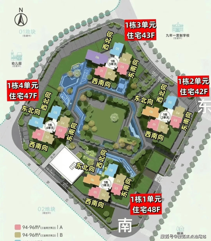 约95㎡三房两卫, 住宅 4.5-5.3万 430-512万 01-02西南、03-04东南