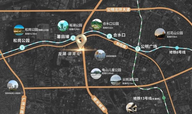 龙湖御湖境距离6号地铁线“薯田埔站”约300米,2站可到公明广场站换乘13号线,直达石岩,南山,3站可到松岗站换乘11号线,直达宝安,南山,前海。