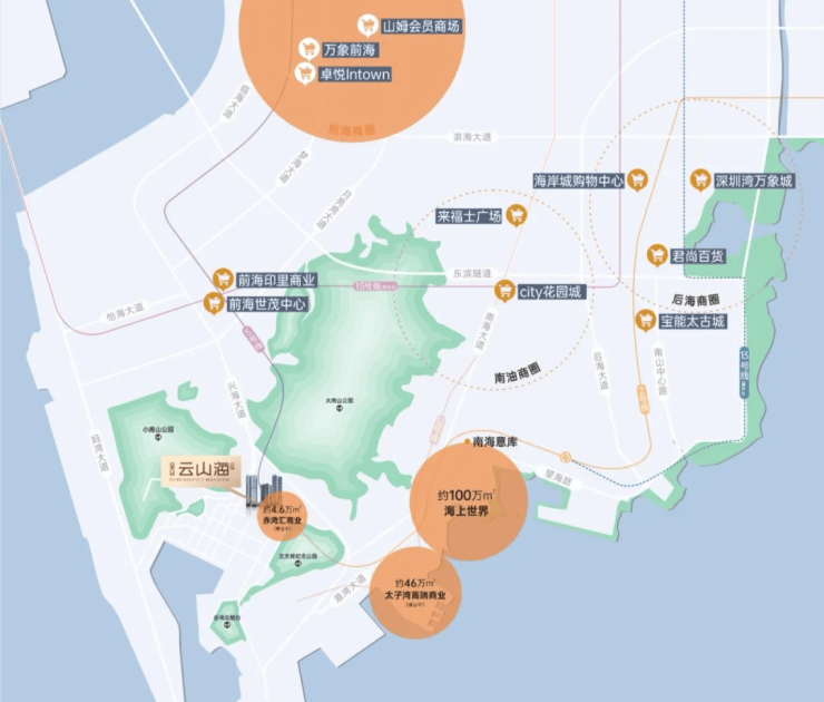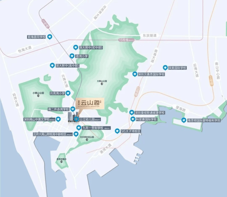1、拥有稀缺山海景观资源,背靠大小南山,南面蛇口港;