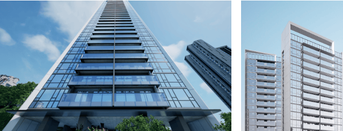 金众云山海采用中式与现代相结合的风格,外立面采用铝板+双层中空LOW-E玻璃,外立面高端大气。