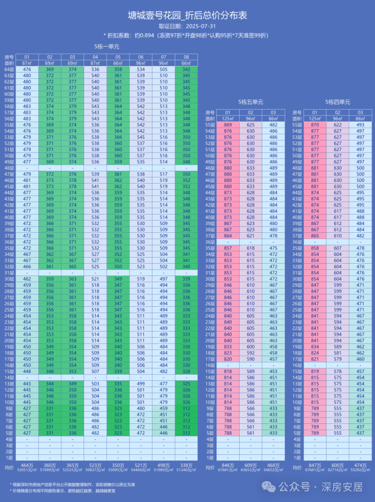 2、折后1单元均价53477元/㎡,折后5单元62465元/㎡。