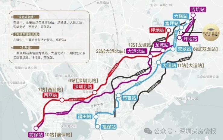 深惠城际轨道线-坪地站(在建中,预计2026年开通);未来1站龙城、2站大运、7站南山,畅联前海、西丽高铁枢纽站和深圳北高铁枢纽站。