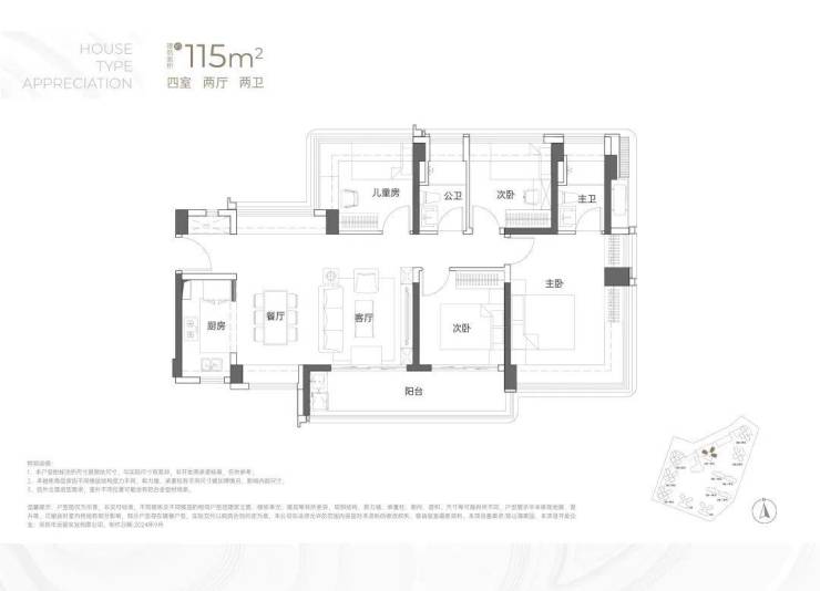 建面约115㎡4房2卫